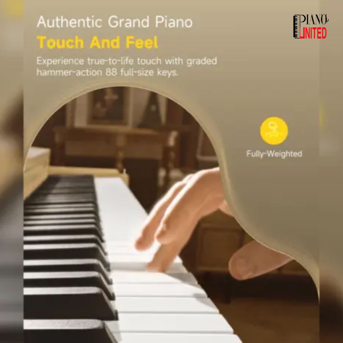 • Real Grand Piano Touch Donner OURA R300 piano keyboard 88 keys feature progressively weighted design that mimics the touch and response of a traditional piano. Each key is finely tuned to replicate the authentic feel and action of an acoustic piano, offering a more natural and precise playing experience