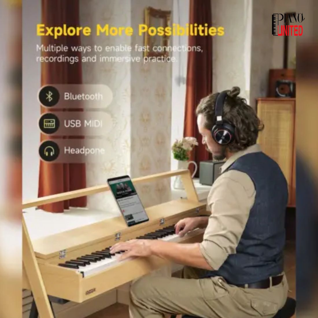 • Versatile for Various Applications The Donner OURA electric piano features Dual-Mode Bluetooth (MIDI+AUDIO). Users can easily connect wirelessly to smartphones and tablets for seamless music creation and playback, eliminating the need for cumbersome cables and enhancing convenience