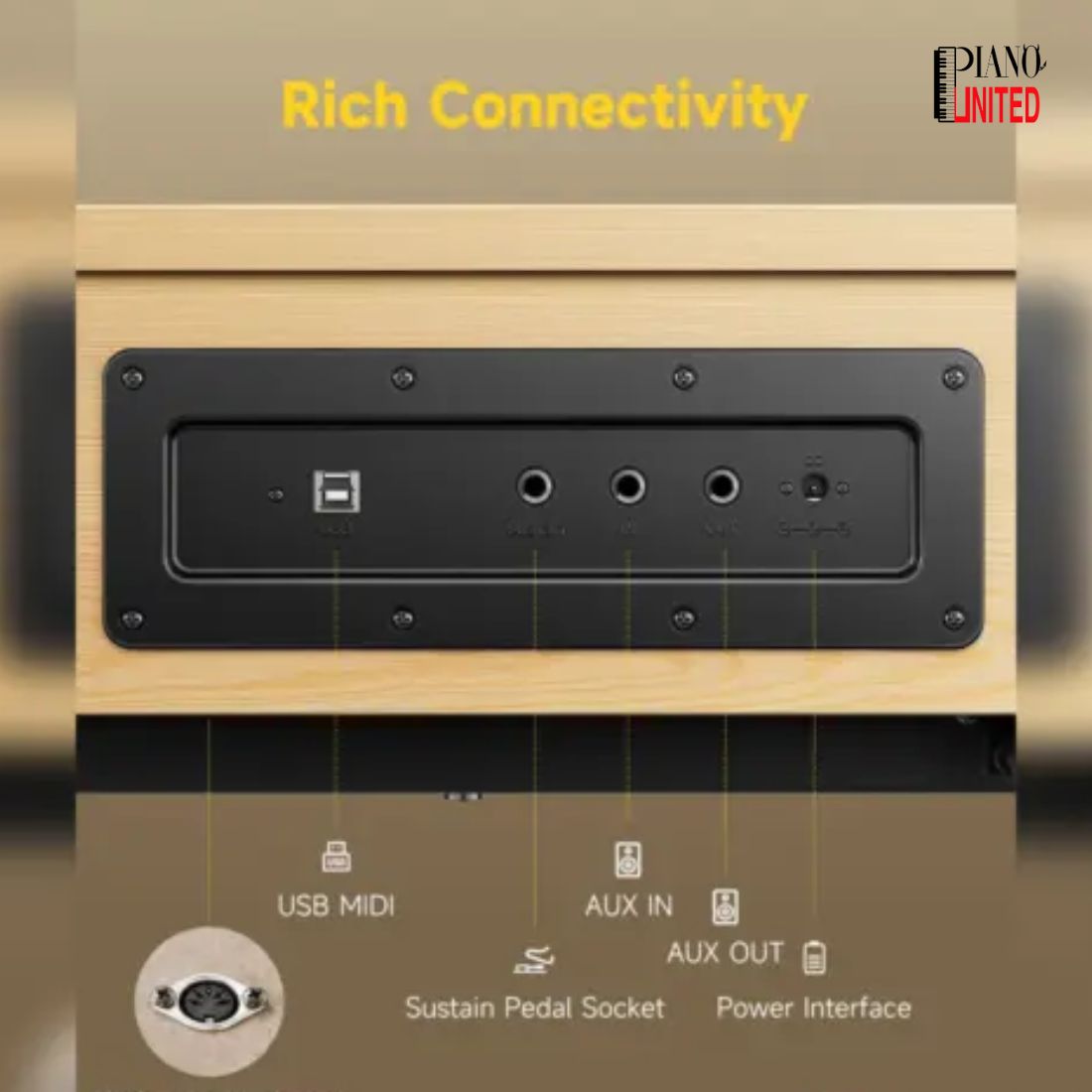 • Where Sound Aesthetics Meets Home Design Combine high-quality sound with American Rustic Design. Donner OURA R300 home digital piano creates a harmonious blend of music and aesthetics, turning every practice session into a delightful experience