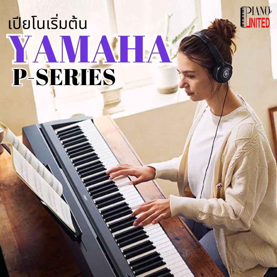 รุ่นเริ่มต้นใน P ซีรีย์ เหมาะสำหรับผู้เล่นที่กำลังเริ่มต้นฝึกฝนเรียนรู้การเล่นเปียโน เป็นที่นิยมไปทั่วโลก ด้วยการจำลองสัมผัสที่เหมือนเปียโนอะคูสติก มาพร้อมความเรียบง่ายในการใช้งาน มุ่งเน้นประสบการณ์การเล่นที่สมจริง ด้วยสัมผัสคีย์ที่เหมือนจริง Yamaha ใช้เทคโนโลยี คีย์บอร์ด GHC (Graded Hammer Compact) จำลองน้ำหนักแป้นคีย์เปียโนอะคูสติก ให้ความรู้สึกสมจริงตอบสนองไดนามิกกาารเล่น สั้น-ยาว เบา-ดัง ได้เป็นอย่างดี นอกจากจะจำลองให้น้ำหนักคีย์เหมือนเปียโนอะคูสติกแล้ว ยังจำลองเสียงออกมาได้ ไพเราะด้วย เสียงเปียโนแกรนด์คอนเสิร์ต Yamaha CFIIIS ที่เป็นเปียโนแกรนด์รุ่นยอดนิยมอีกด้วย ฟังก์ชั่นครบครัน รองรับการฝึกซ้อม บันทึกเสียง เชื่อมต่อคอมพิวเตอร์ อินเตอร์เฟซเรียบง่าย ใช้งานสะดวกเป็นมิตรกับมือใหม่ มีเสียงในตัวเครื่องให้มา 10 เสียง รองรับ Polyphony ได้ 64 Notes มีเพลง Demo ให้เรียนรู้ 20 บทเพลง ลำโพงเป้นระบบ Stereo ให้เสียงที่มีมิติ เรียกได้ว่าเป็นรุ่นเริ่มต้นที่ยอดเยี่ยมมีมาตรฐาน