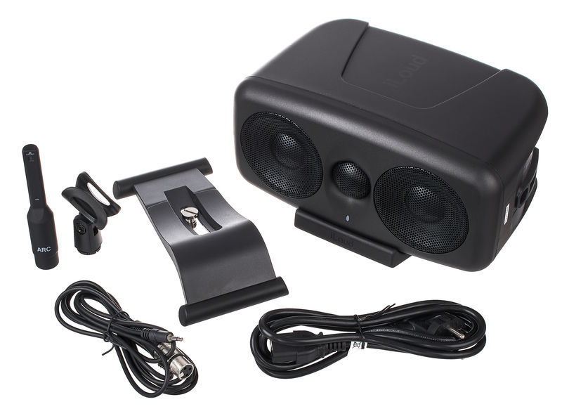 - Includes mains cable, ARC measuring microphone with connection cable, swivelling table stand, feet for horizontal installation and locking key